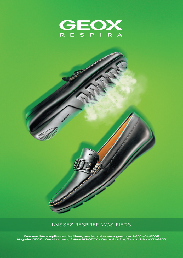 Series of Adverts on GEOX styles shoes promoting the shoe that breathe.
